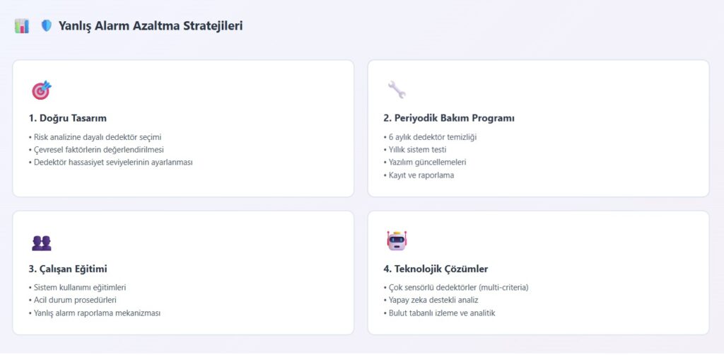 Yanlış alarmları önlemenin en önemli yollarından biri, sistemin düzenli bakımını ve testlerini yapmaktır.