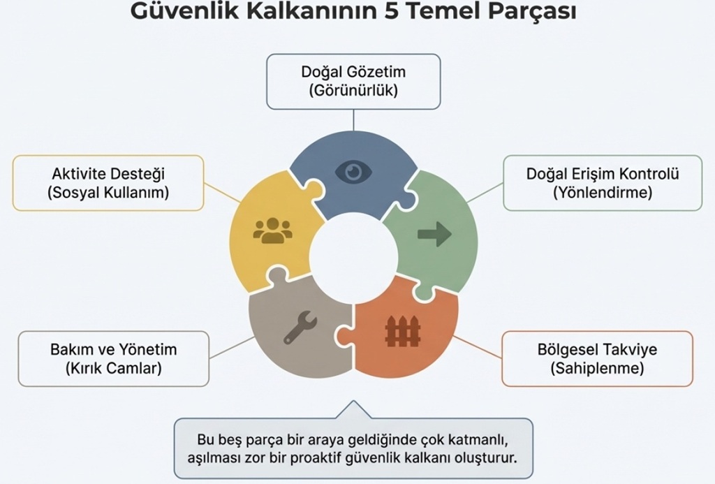 3) CPTED’i (Çevresel Tasarımla Suç Önleme) kontrol listesi gibi uygulamak